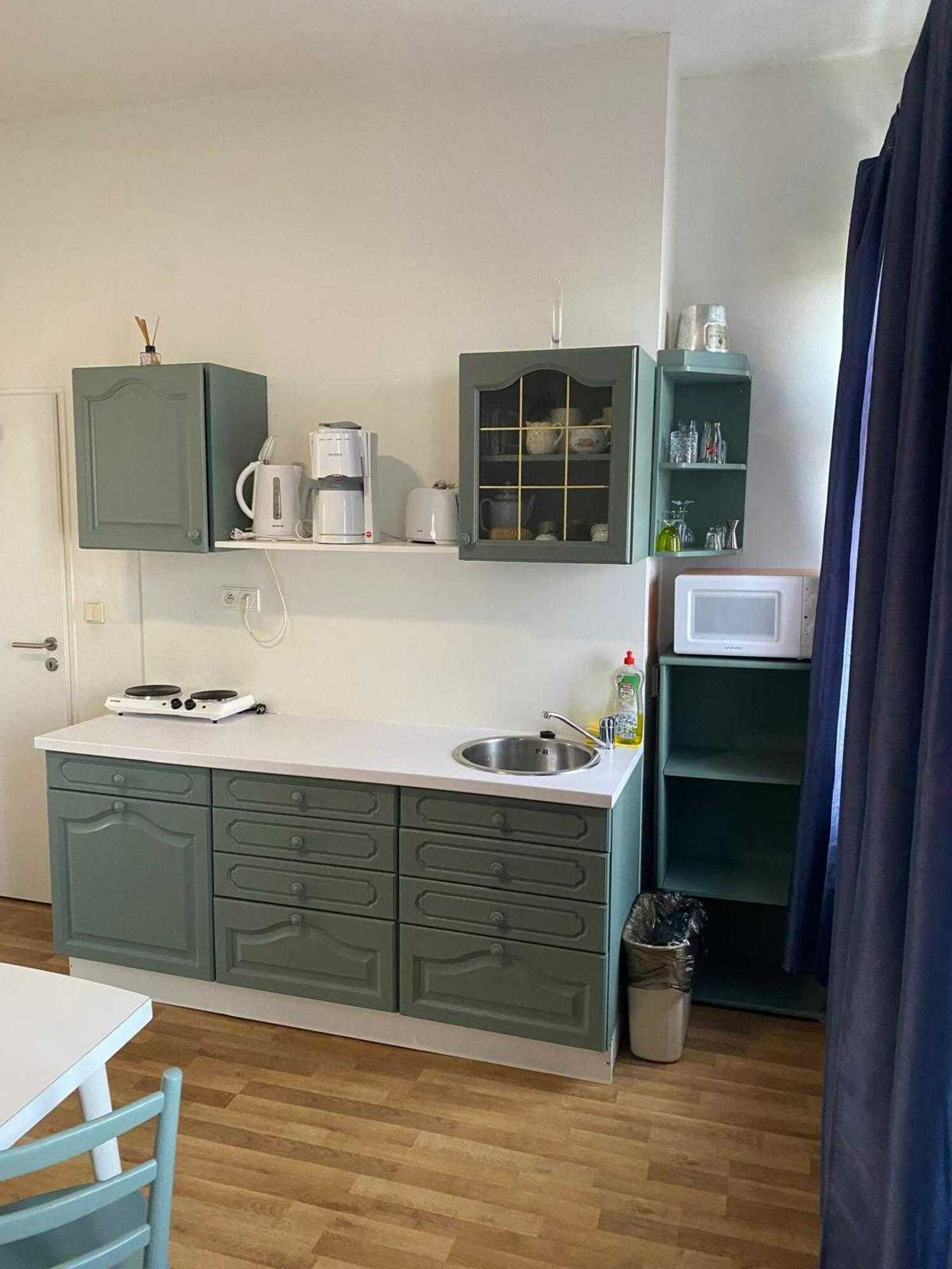 Dieses Apartment verfügt über einen Toaster, einen Wasserkocher und Küchenutensilien.