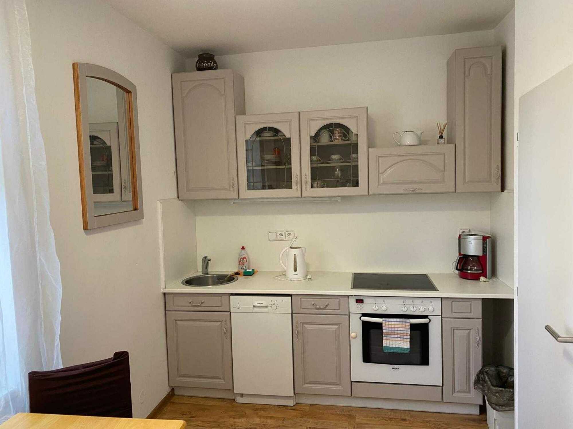 Dieses Apartment verfügt über ein Kochfeld, einen Sitzbereich und eine Küchenzeile.